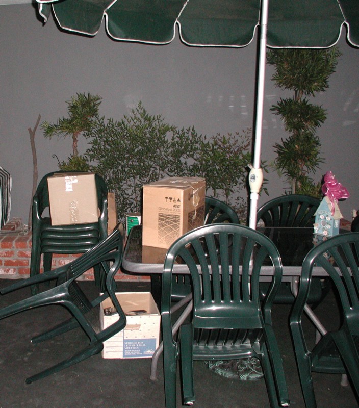 Boxes are "growing" on the patio.