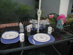"old" ways - breakfast on the patio. Yes,